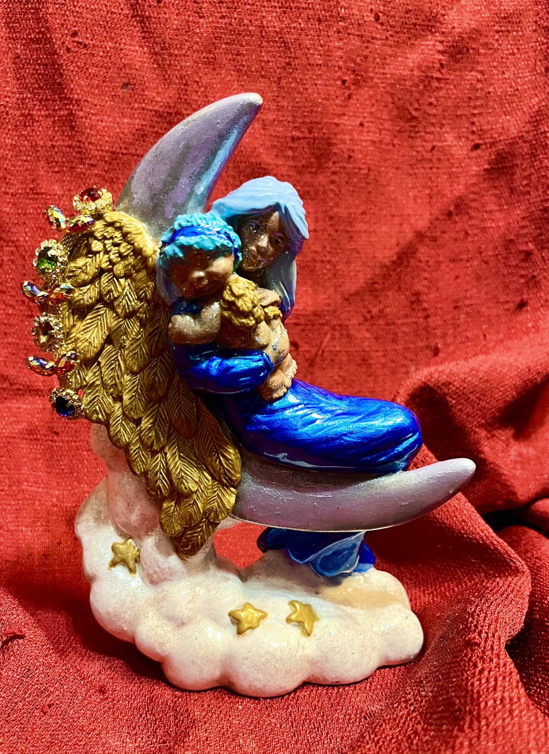 This 8 inch figurine of a classy Day of the Dead lady is hand painted and sealed in gloss resin. The figurine is altered from it’s original state of a respectable lady from the 1800s.Unique and one of a kind piece