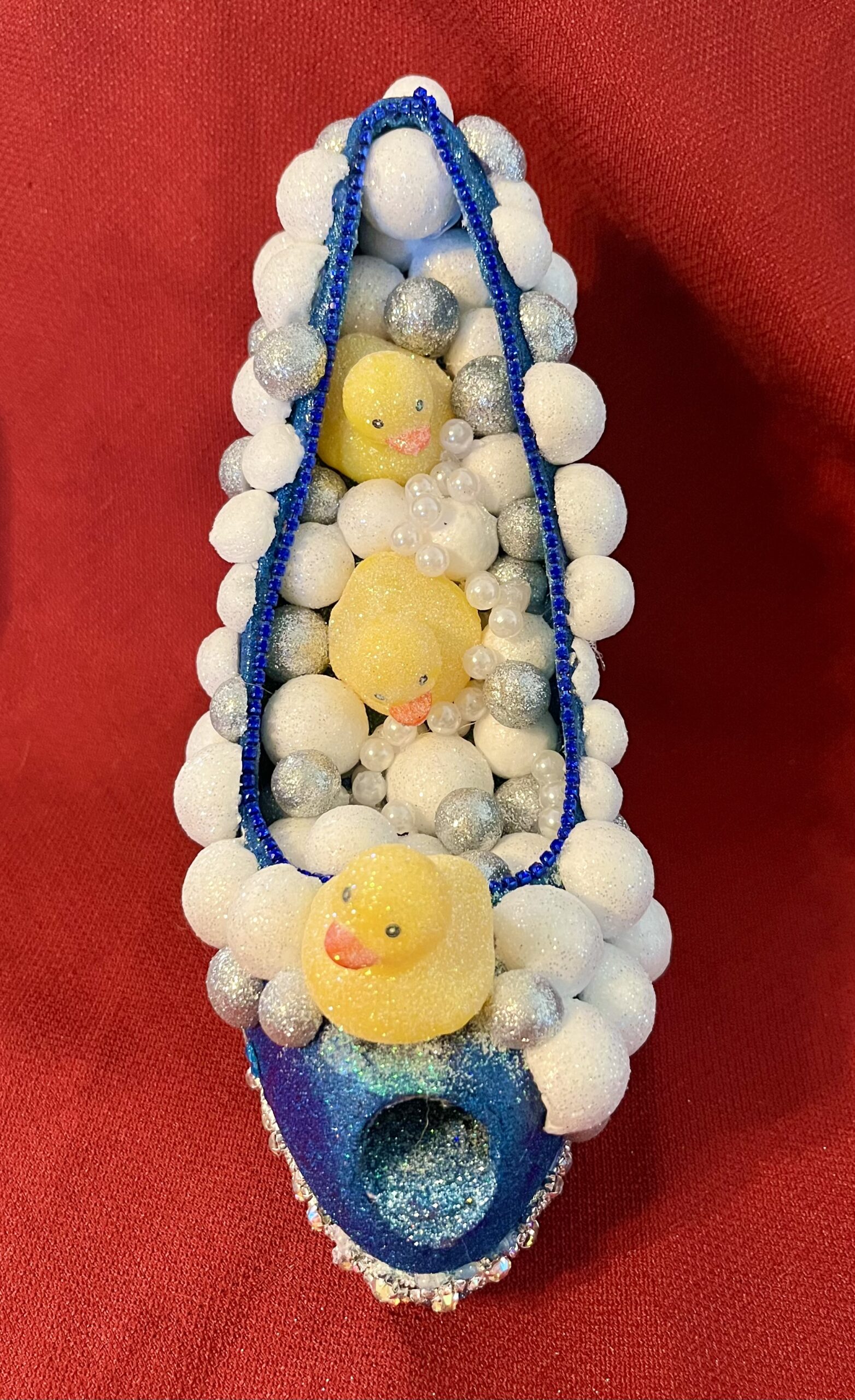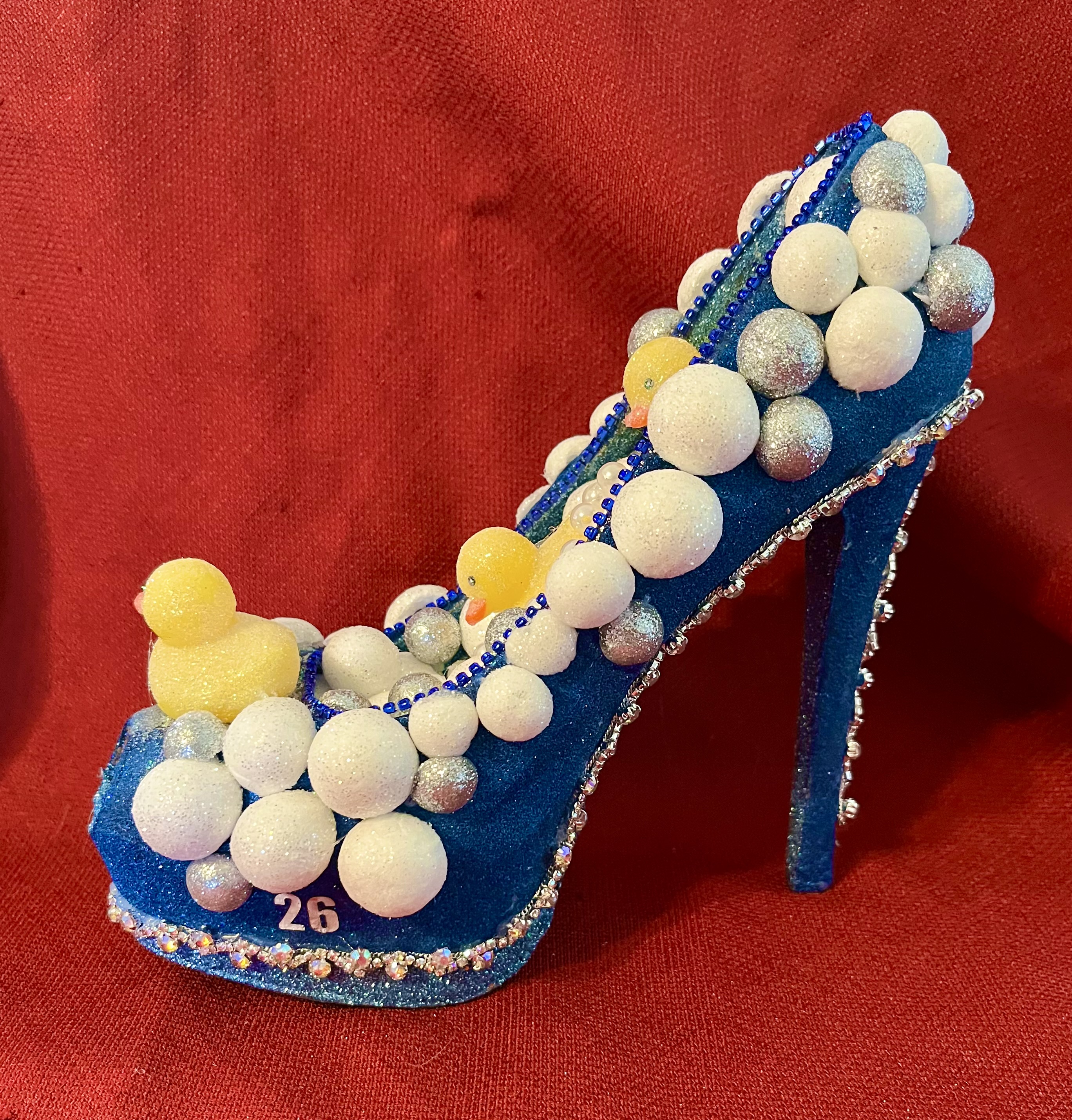 This Flamingo shoe is for sale and is similar to the ones in the Krewe of Muses parade. This is one of many shoes I make for special throws. This one is for sale as pictured. If you are interested in custom made shoes please contact me at chari@blackcatlagniappe.com